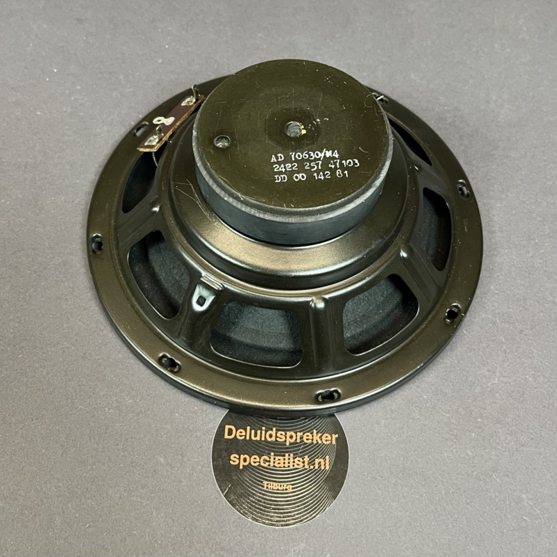 OverzichtDeze breedband speaker uit 1981 in 4 ohm. Werd onder meer gebruikt als basspeaker in kleine gesloten Philip boxen. Maximale boxinhoud is circa 25 liter. De conusrand is van rubber, de conus zelf van geimpregneerd textiel.